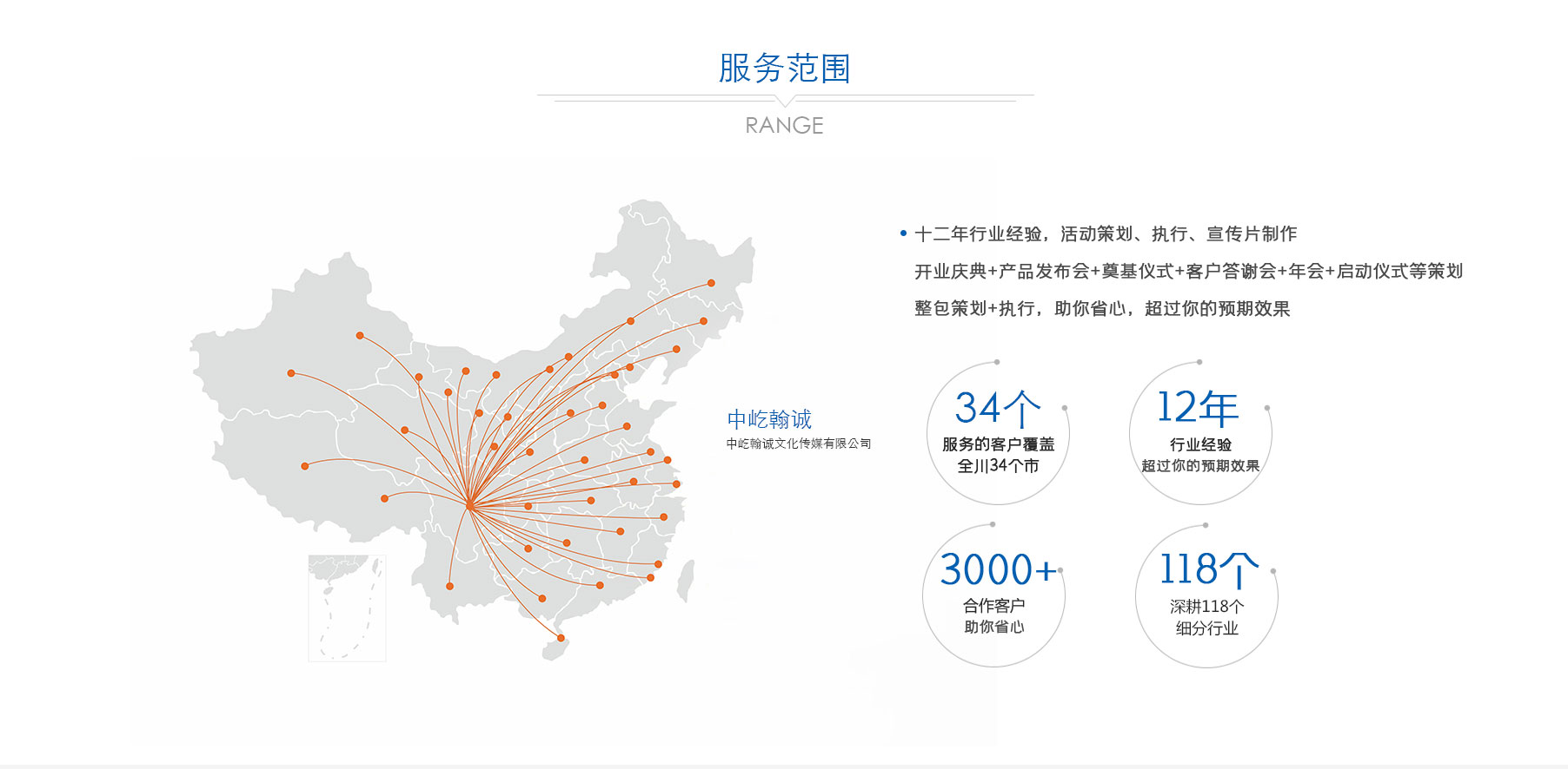 公司自成立至今服務于媒體、演繹、通訊、物流、房產、會展、金融、旅游等118個細分行業(yè),合作客戶3000+,擁有12年行業(yè)經(jīng)驗,以高效便捷的一站式服務,打造精美的活動項目效果。我們全身心傾聽,領會客戶的需求,與客戶共同探尋品牌的核心價值。我們在為客戶提供品質服務的同時,贏得了客戶的信任,為客戶創(chuàng)造價值。
